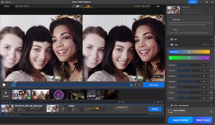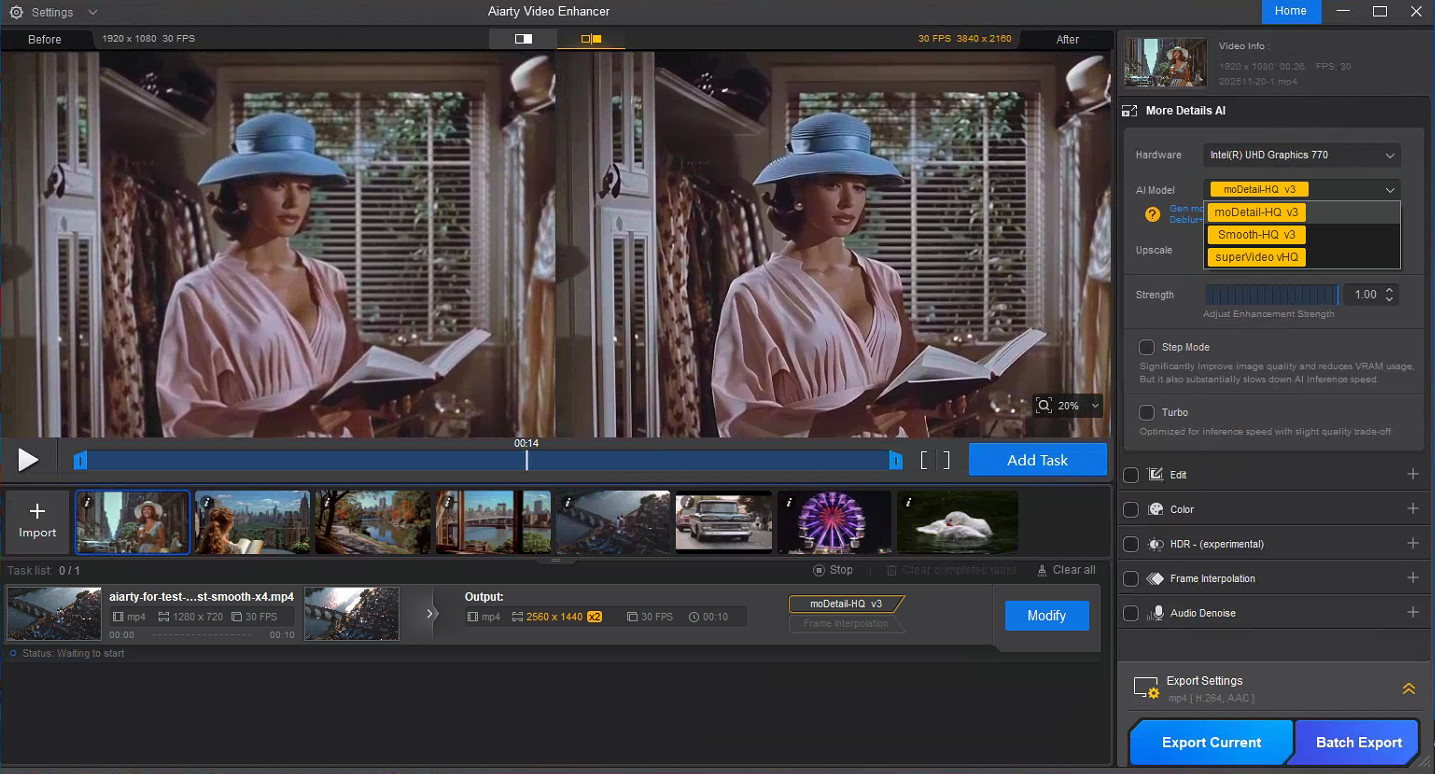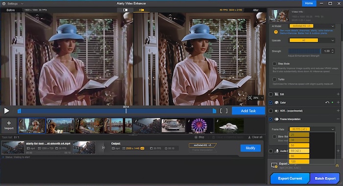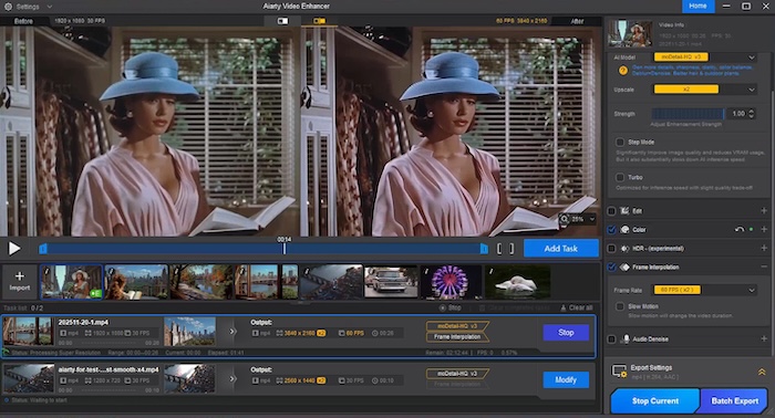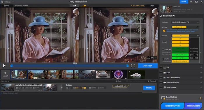 When you’re ready, hit Add Task, then Export Current, and let Aiarty work its frame-by-frame magic. Depending on your footage length and target resolution, it might take a while—but trust us, the results are worth the wait.