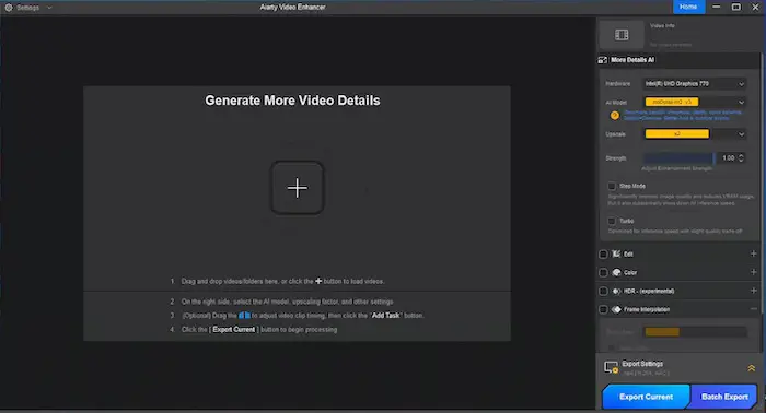 When you’re ready, hit Add Task, then Export Current, and let Aiarty work its frame-by-frame magic. Depending on your footage length and target resolution, it might take a while—but trust us, the results are worth the wait.