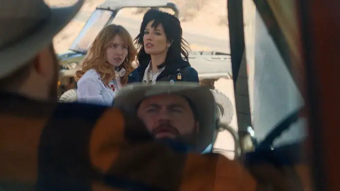 Americana sets a priceless Lakota ghost shirt as the film’s MacGuffin, tracked down by a large cast of desperate characters. First, there’s Mandy (Halsey), a single mother, who comes into possession of the shirt after it was stolen by her boyfriend after her boyfriend stole it during the murder of a wealthy collector. Fencing the shirt will allow her to escape her abusive boyfriend. Then her son, Cal, believes he is the reincarnation of Sitting Bull and wants to return the shirt to his tribe.