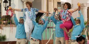 Thinking that this might be a good time to recapture some of their lost youth, Star suggests that the two take a vacation to Vista Del Mar, a coastal community in Florida where middle-agers like themselves flock to get their grooves back. “I feel like we’re fading away,” she laments. Barb and Star arrive at their hotel, which welcomes them in the first of two extravagantly weird musical numbers, only to learn that their reservation is the dumpy motel across the street. No matter, because of a family that has mysteriously gone missing, a room has become available at the initial resort, so the two check-in and get to chillin’.