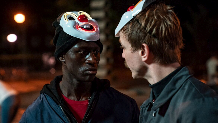 Bungué overcomes his somewhat unlikeable character’s generic traits. His obsession with being “good” but doing next-to-nothing to achieve this much-clamored sainthood becomes grating, fast. Yet the actor compensates by allowing humanity to shine through, therein letting us sympathize with, if not necessarily understand, Francis. Albrecht Schuch’s Reinhold slouches and is allergic to everything but air; he’s also vehement and dangerous, prone to unexpectedly sadistic acts. He speaks in a funny voice and is utterly reprehensible and magnetic. I’m not sure if it’s a good performance, but it owns the film.