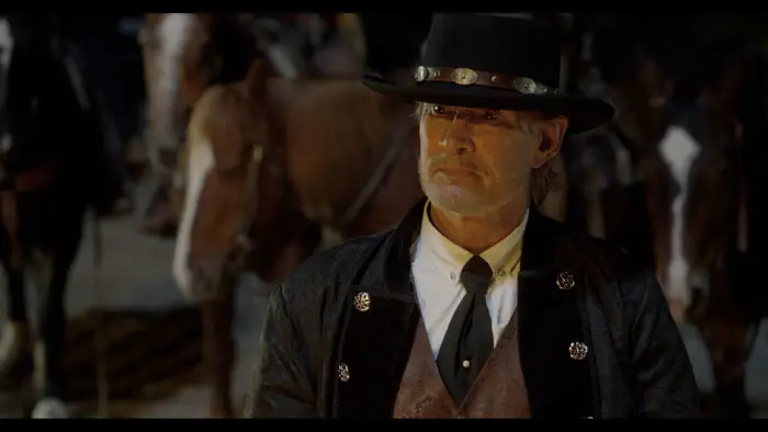 Benjy Gaither, Jim Peterik, and Marc Scherer all worked on the score. At first glance, the music cues seem more in line with a dystopian motion picture than a western, but that is the point. The rock-fueled compositions match the road to hell Rose wanders to get what she wants. Robert Clancy, who also produced, and Rothrock were the costume designers, and they did a bang-up job. The costumes appear lived-in and worn, yet remain period-accurate.