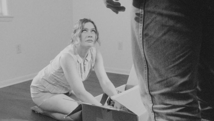 I have been writing for years about how my former state of residence, Texas, has retained its unique ecosystem that feeds its maverick independent film output. Blind Escape is a film exemplifying this, radiating that specific Lone Star indie venom. The stunning monochrome cinematography by Kinzie and Thomas Blanks has black and white visuals on the same level as The Last Picture Show. An arsenal of angles enhances the rich bleakness of the compositions and silhouettes straight out of art photography. There is a motif of repeatedly revisiting the white picket fences along the houses, which comes off as very Lynchian. Other such elements are finding a black doorway and plunging into it, as well as the surreal finale that you won’t see coming.