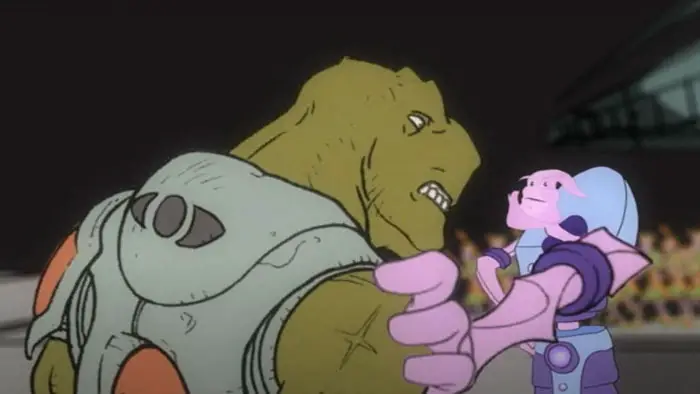 Dinonauts is a fully animated Star Wars-esque space epic aimed at kids, complete with 1970s-style artwork. It looks to me like it was based on hand-drawn art, which was then animated digitally. Included are references to not just Star Wars and other classic space sci-fi, but also Rocky and even a bit of a style similarity to 1981’s Heavy Metal (which is not for kids). Distrakt (director Omar Jones) states that this film was created over a nine or 10-year period in his studio, which is conveniently located in his garage, making for an easy commute to work each morning. Anybody who puts this type of time and care into creating a piece of art, or an entire film’s worth of frames, deserves our praise for their sheer dedication, creativity, and work ethic. This is a piece of art created out of pure love for the genre and the medium.