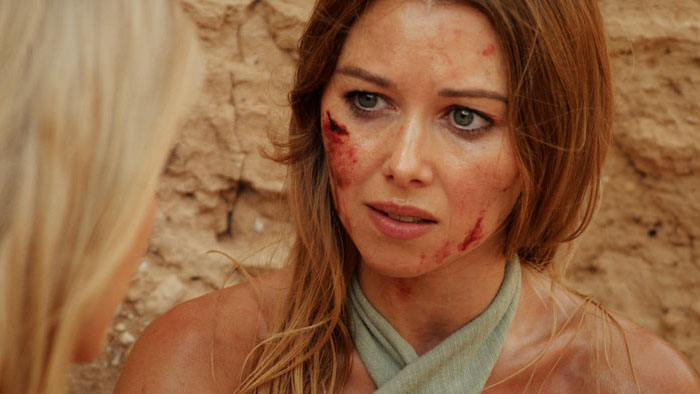 So, against all odds, Escape is an excellent choice for a date night or even a girls’ night in. In fact, this movie is the best argument I can think of as to why Lifetime should start running non-stop blocks of cage-girl pictures. It starts revenging right away, which is exactly how a picture like this should start. A woman in a bikini goes to escape, gets bloodied up badly, and does some bloodying herself. The bikini image takes on a whole different context once you add the flesh wounds.