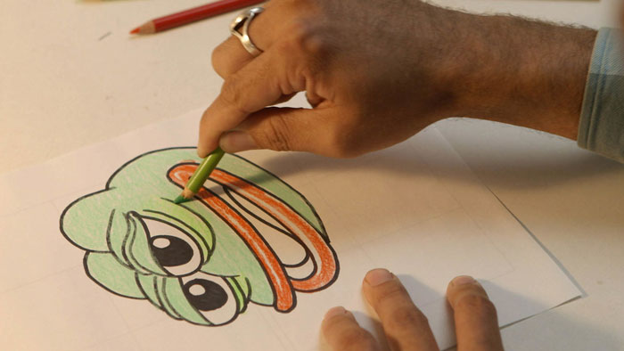 While recounting Pepe’s downfall, Jones cuts away to experts on modern psychology to explain the need for one-upmanship. Here director Jones dives into the culture of teens outdoing one another online, pushing the envelope of bad taste in discussion threads on 4chan. It is on this site where Pepe turns into everything from Hitler to Trump. Meanwhile, Furie, Pepe’s creator, never acknowledges the problem with losing control over one of his creations until it is far too late. “Once the genie is out of the bottle, you can’t put him back in again,” one person explains.