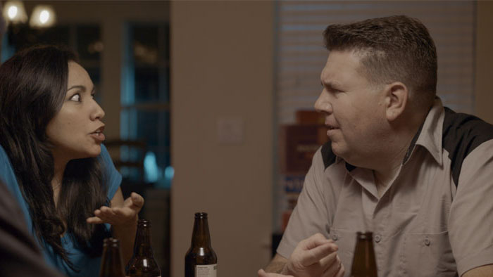 Ultra-competitiveness gets the best of a group of friends in Michael Charron’s short film, First Impressions. Randall (Erik Anderson) and Denise (Alyssia Riveria) arrive at their friends’, Amanda (Diana Rose) and James (Chadwick Smith), home for game night. Hoping to break Amanda’s weeks-long winning streak, Denise brings the game First Impressions and her ringer boyfriend, master impressionist Randall.