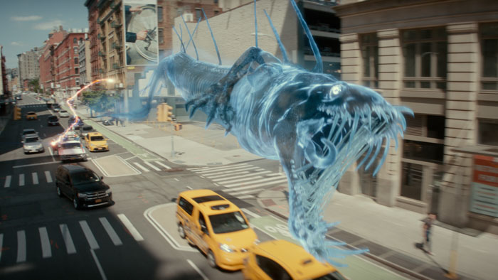 Sewer Dragon Ghost being chased through New York in Columbia Pictures’ GHOSTBUSTERS: FROZEN EMPIRE.