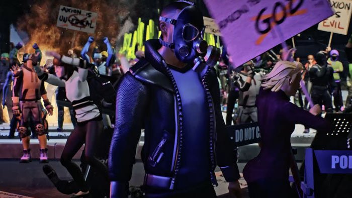 Thematically, Max Beyond touches on many deep concepts, such as the ethics of human experimentation, the dangers of unbridled technological progress, and the class conflict caused by mega-corporations. Using what appears to be their own private security forces, Axion ruthlessly crushes all forms of political and social dissent. Rioters hold up signs that proclaim, “Axion is evil!” and “Stop testing on kids! Axion is playing God!” and “Corporate greed is not science!” Unfortunately, though, the movie only hints at these themes and never fully develops them. The non-linear storytelling, although creative, is jarring and disorienting.