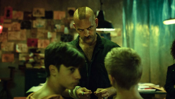 The costumes by Andrea Cavalletto best illustrate the two worlds Mondocane has a foot in. Cavalletto’s clothes for the citizens display the range of classes that is the theme, while the gang costumes hearken back to the Italian 80s post-nuke fashion. The sizzling score by Federico Bizozzi and Davide Tomat takes the synthesizers heard in the originals to new levels of sophistication. All the actors do a great job of maintaining a commitment to realism in the sci-fi setting. Borghi is especially effective at making Hothead seem eviler the nicer he acts.