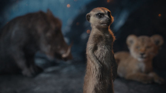 (Center): Timon (voiced by Billy Eichner) in Disney’s live-action MUFASA: THE LION KING. Photo courtesy of Disney. © 2024 Disney Enterprises Inc. All Rights Reserved.