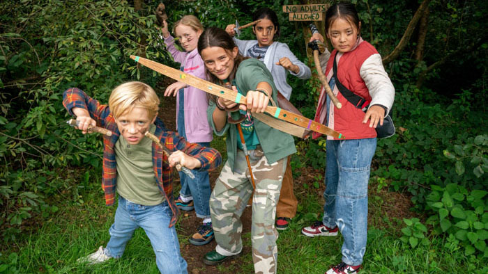 A group of British kids, led by troublemaker Robin (Darcey Ewart), reenact grandiose battle scenes in their local woods. Their imaginations have conjured an entire kingdom, where bikes become horses, and cardboard turns into knight armor. They have their rival gang, which is vying for a highly coveted crown. “We can fight the forces of evil and still be home in time for dinner,” Robin muses in her narration.
