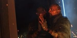 Neve Campbell plays Sawyer’s wife, Sarah, and she’s an ex-military surgeon so she has a forced fight scene with Xia (played by Hannah Quinlivan), the head henchman who scowls and laughs maniacally. Again, another cliché’ that is so overdone; it’s weird that they played her so straight. The Dark Knight’s Chin Han shows up to remind us that he was once in a better movie. He plays the creator of the titular Skyscraper who has a secret that when revealed, is sure to make you yawn. Pablo Schreiber plays a character with facial scars, so you can guess how likely it is that he’s going to turn out to be a bad guy. Everyone knows that people with facial disfiguration are always bad guys, right? Just another silly cliché that most current films in the genre have tried to move past, but this one embraces to beyond appalling levels.