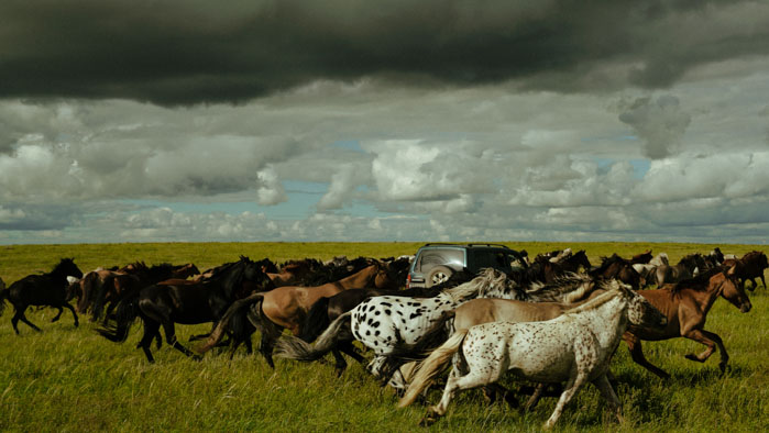 Striding Into The Wind has a subplot involving a movie undergoing production. Kun is its sound recordist, while he hires Tong as the boom operator. Ming (Wand Xiaomu) is making a thesis project about a Mongolian herder searching for her missing husband. Wei’s early days as a sound recordist take precedence in this section, wherein the characters frequently quote the likes of Wong Kar-wai and Hou Hsiao-Hsien. The impact and inspiration of these legendary directors are visible in Wang Jiehong’s cinematography. The film is filled with several well-choreographed sequences, which reveal a lot under the hood of all the fun and laughter. There are long static shots, wide scenes capturing the natural landscape’s beauty, and the camera lens longingly gazing through Kun’s Jeep at the world.