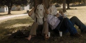 I’m certain some of these deceptively logical thoughts went through the heads of the Baker Brothers, Alan (Dallas White) and Eddy (Tim Harbolic). As they sit under the shade of a tree and mentally prepare for the robbery, you get the impression that this isn’t the first time they’ve overestimated themselves. Once they’re both on the same page, they put on some pillowcases with eyeholes and storm into the church. “Storm” might not be the right word, considering their trouble opening the front door. Regardless, they begin outside and end up inside. For the Baker brothers, that’s a victory.