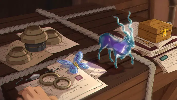 From an animation perspective, The Glassworker is an astonishing achievement in every way. The characters move wonderfully, and each person has a distinct, recognizable design. Waterfront is a town filled with beauty, and the animation highlights this. A scene involving a djinn and sand is marvelous to behold. But it is the use of lights and colors that truly makes this a visual masterstroke. The glass objects all have different colors, and the way they refract light is used to set the mood and add a sense of wonder to most sequences.