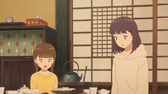The animation is stunning, like a stairway of paintings to the moon. The landscapes are full of tiny details that glue the eyes to the screen, whether broken buildings or gorgeous nature. There is also a stylistic flourish where the animation style changes for Kiwa’s folk tales, reverting to a more abstract and primitive look that is brilliant. The nature images also instill a soothing sensation that would actually help calm real PTSD sufferers down. The amazing visuals send a warm breeze through your daily struggles. It has the gentle shimmering power of a far-off exploding star. There is also a spare use of music that works wonderfully, with many scenes in silence with ambient daytime noises in the background. It makes the moments of music and magic more effective.
