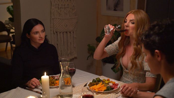 While underdeveloped on the horror side, The Rebrand excels in its brilliance as a deep, dark, and delicious satire of influencer culture. The inventiveness put into the laughs by writers Adelaide and Webb will split some torsos. The specifics of the satirical targets is lung opening in how hard the guffaws will come. The toxic relationship material is radioactive gold. It will definitely bring up memories of crazy b*****s past. Helping deliver the tee-hees in a major way is the perfect dead-panning by McQueen. McQueen keeps the humor dry as dead mesquite, which makes their punchlines explode bigger, like a Lesbian John C.Reilly. Silver-Vezina handles her role as the straight woman with poise, as she gives realistic reactions to both the comedy and the horror.
