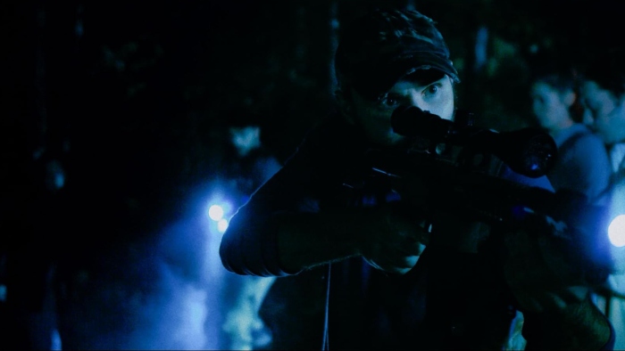 The cinematography is top-notch, and not just for an indie film. The cast delivers solid performances, including the men in the suit (Schulte and Frank Kramer). The low-light scenes in the forest are creepy and effective. Schulte’s special effects are passable, given the low budget. The creature is a cross between Bigfoot and the Predator. It’s sentient, intelligent, pissed off, and has good tech, not something you should tangle with. There’s a hint of Attack the Block in the vibe as well.