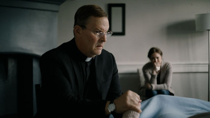 A lot of thanks goes to the phenomenal low-light cinematography by David Gordon. Most of The Veil takes place in dark rooms that are barely lit by green rays of light through the windows, with Kennedy allowing candlelight to be used only a few times. Gordon finds amazing sharpness in the details and preciseness in the shadow play of his compositions. It is mesmerizing to the eye and narcotically soothing to the nerves. I could go to sleep in O’Bryan’s house in the green glowing woods night after night if it weren’t for getting caught.
