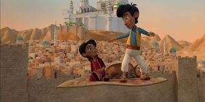 So, it is off to the capital city of Petto, home of the overfed Sultan (Dermot Magennis). Once there, Hodja runs into street urchin Emerald (Lucy Carolan). She and her orphan friends steal from the markets and people of the city at the behest of the greedy Rat (Marcus Lamb). They do this in exchange for a place to sleep that isn’t an alleyway. The Rat overhears Hodja say the magic words that make the carpet fly and decides to steal the enchanted object. He brings it to the Sultan, who makes Rat the general of the army. Now, Hodja and his new friends must steal the magic carpet back from the Sultan, find Diamond, and make it out of the city alive.