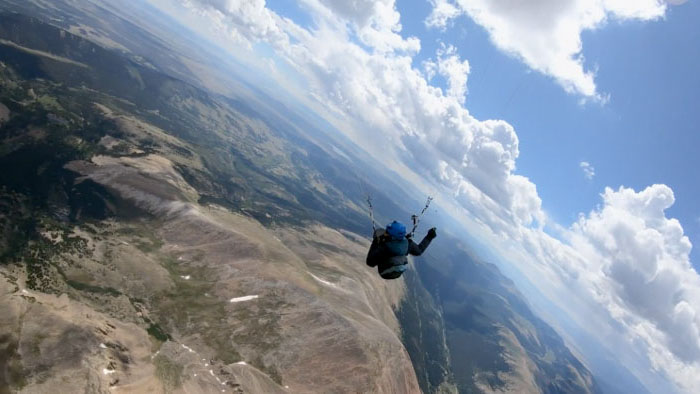 “…adventurer Peter Thompson attempts to hike and paraglide across the Colorado Rockies…”