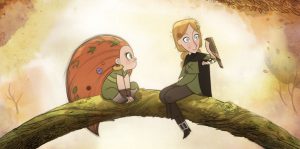Wolfwalkers is the story of Robyn Goodfellowe (Honor Kneafsey), the daughter of her village’s best hunter. Her only dream in life is to be like her father, Bill (Sean Bean). As Bill leaves every morning for the hunt, he tells his daughter to stay safe at home. Of course, Robyn’s bravery and determination force her to tail her father from a distance, alongside her trusty falcon, Merlin.